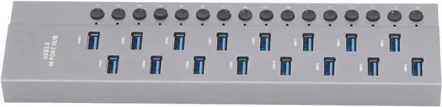 Aluminum Alloy: The USB 3.0 hub has a premium aluminum casing with a stylish, rounded edged design that is both durable and aesthetically pleasing. Each port of the hub's power supply has an individual switch with LED lights, so you can easily connect and disconnect devices by simply pressing the power button for one second.