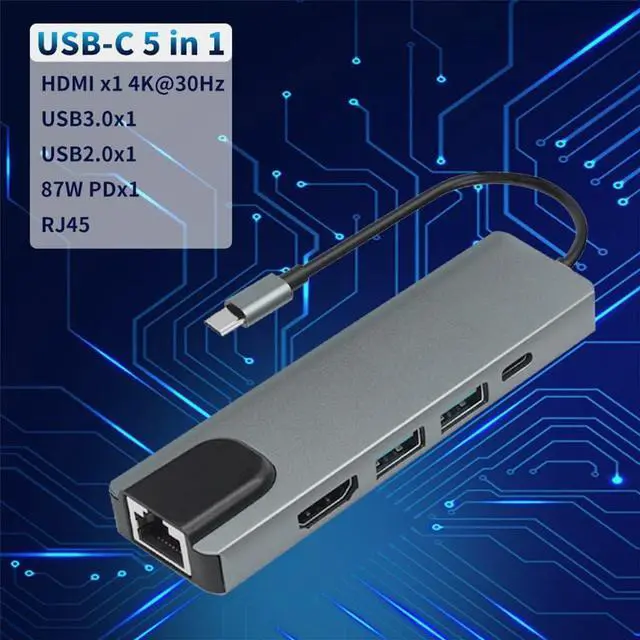 (2) C Hub 5-in-1: USB3.0*1 + USB2.0*1++PD+RJ45