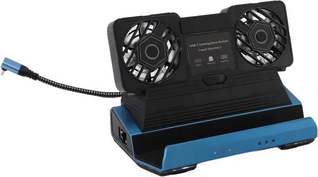 10 in 1 Docking Station: 10 ports include 1 USB C to HDMI 2.0 (4K 60Hz), 1 gigabit ethernet port (1000Mbps), 1 storage card slot (U3), 1 memory card slot (U3), 4 USB 3.0 port (5Gbps), 1 USB C PD port (100W), 1 M.2 NVMe Slot. Additionally, the dock station is equipped with dual cooling fans for effective heat dissipation, ensuring a seamless gaming experience.