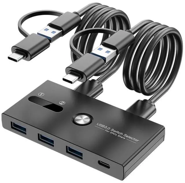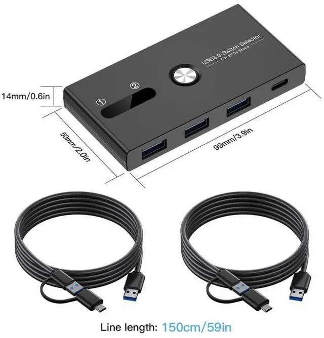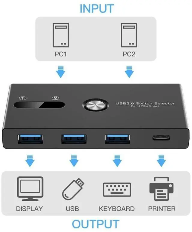 Switching Type C+USB3.0 KVM switcher allows you to easily toggle between two computers, sharing multiple devices like keyboards, mice, and printers.