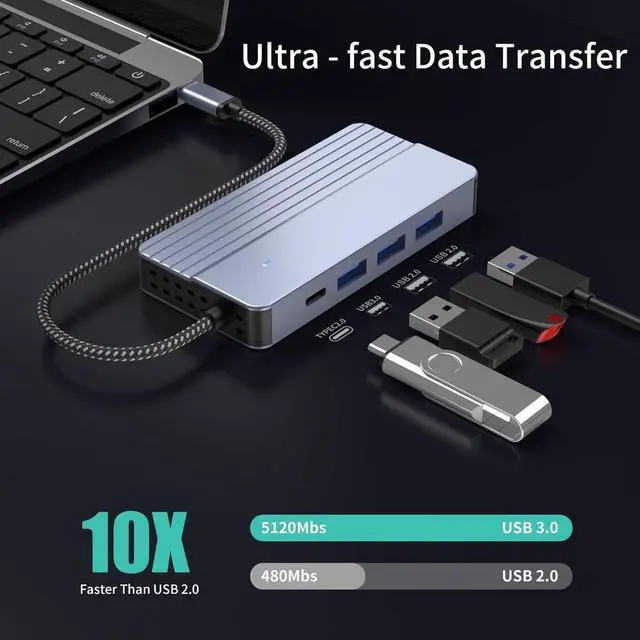 This hubs supports high resolution 4K30Hz HDTV output, stable 100Mbps Ethernet connection, 5Gbps data transfer with USB3.0, and PD100w fast charging.