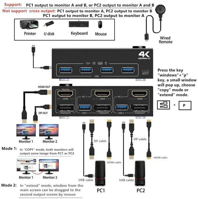 Clear USB3.0 Port KVM Switcher 202DH3 Clear Resolution And Vibrant Colors For Home And Office Use Multi Port KVM Switcher