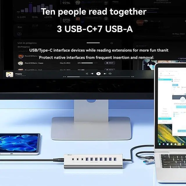 Ten words of the same word,3 USB-C + 7 USB-A