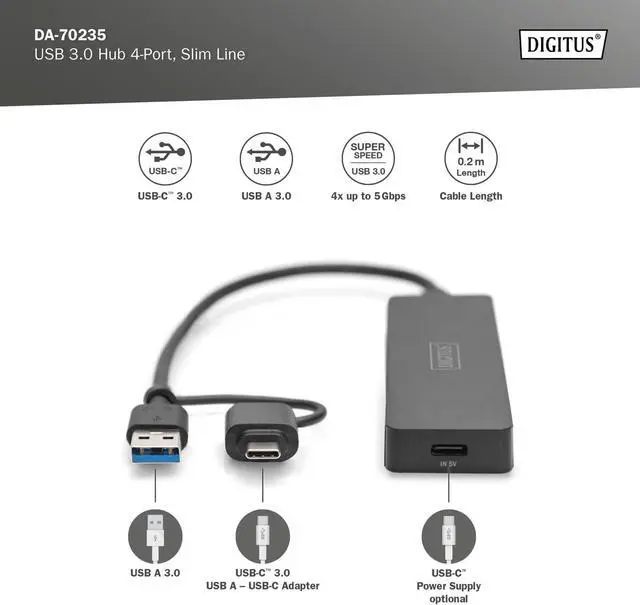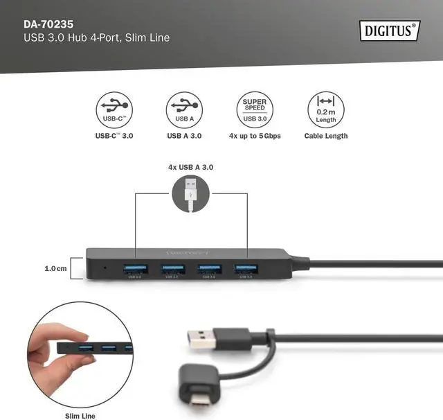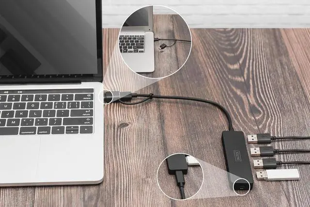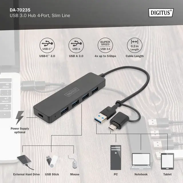 The USB Hub provides up to four additional connection options for external hard drives, SSDs or other USB devices on your PC, notebook or tablet.