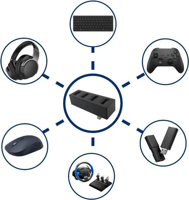 The USB hub adapter can be expanded at the same time. Perfect for connecting USB devices such as controllers, mouse, keyboard, and Bluetooth headset adapter, etc.