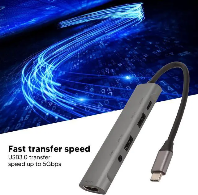 Versatile Connectivity: Features a 5-in-1 design with PD charging port, USB3.0, USB2.0, 3.5mm headphone jack, and HD Multimedia Interface for seamless connectivity.
