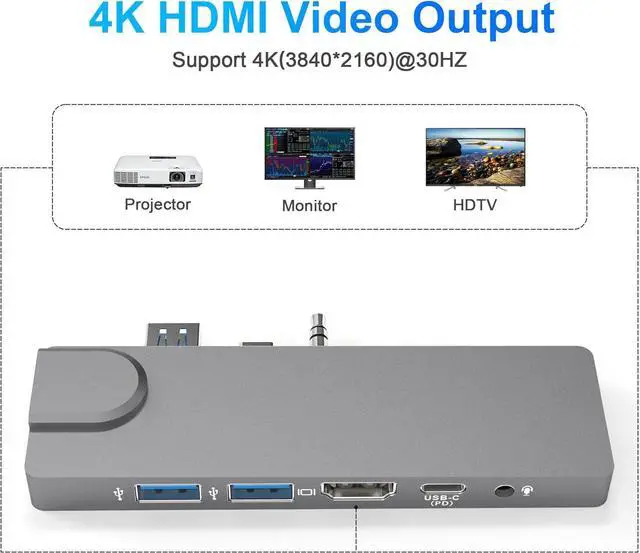 Surface Laptop 5/Laptop 4/Laptop3/Laptop Go HDMI Adapter: Surface Laptop 5/Laptop 4/Laptop 3/Surface Laptop Go Hub with 4K HDMI, mirrors your Laptop 5/Laptop 4/Laptop 3/surface laptop go display to HDMI-enabled devices with the resolution max up to 4K(3840X2160P)@30Hz and freely show your laptop's high-resolution display on most HDTV, monitor or projector with an HDMI port, bringing you better viewing experience.