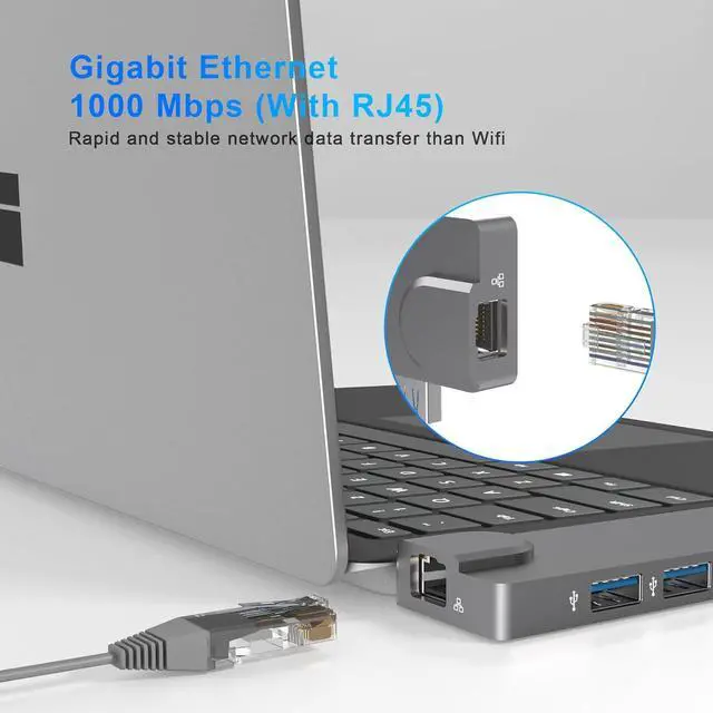 Advanced networking & Type-C 60W PD: Surface Laptop 5/Laptop 4/Laptop 3/Laptop Go Gigabit LAN Adapter offers full 10/100/1000 Mbps over RJ45 Ethernet port, Download movies quicker, transfer files faster, reduce latency. Surface Laptop hub charges your Surface Laptop 4/Laptop 3/Laptop Go while connecting 60W power delivery port. You could securely charge while connecting multiple peripherals for data transferring and strong power storage.