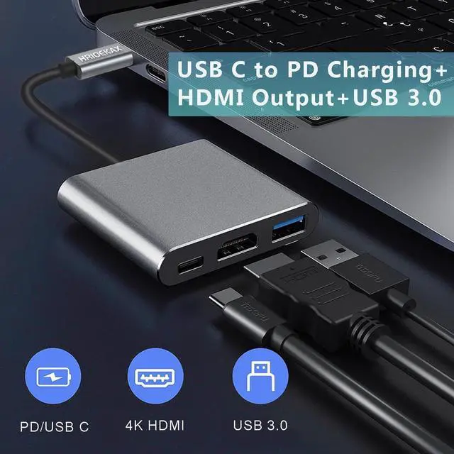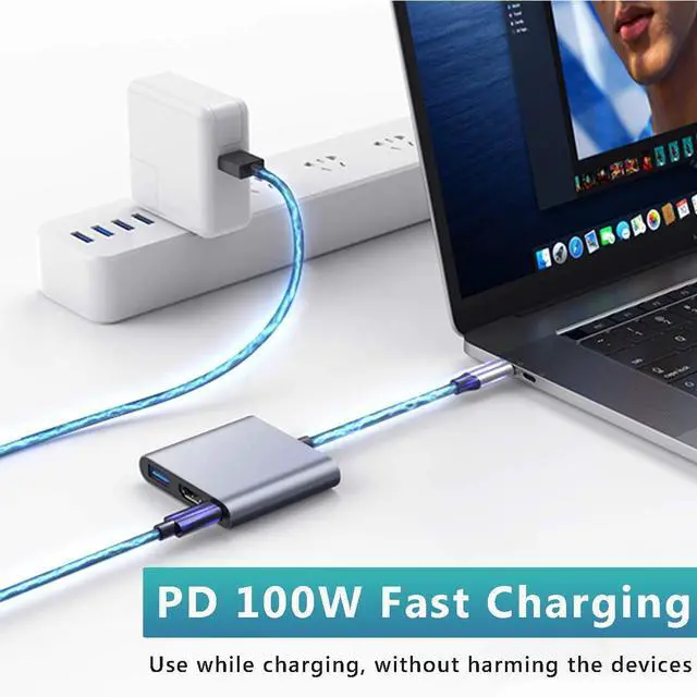 3 in 1 USB-C to HDMI Adapter - USB Type-C to HDMI & USB 100W Fast Charging & USB 3.0 Multiport Adapter convenient for home theater entertainment, office, exhibition, presentation, teaching etc.A good product solution allows you to charge faster, more stable and more HD, with a perfect size to carry in pocket.