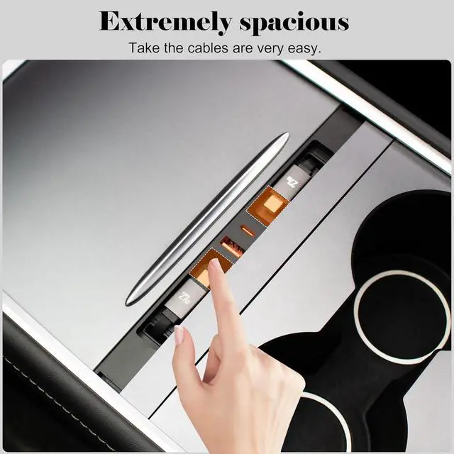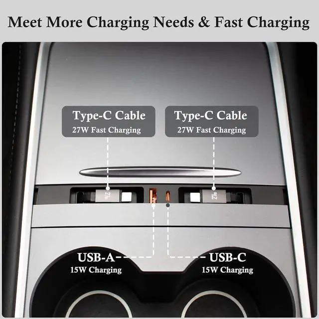 Multi-portEnjoy dual interface Type-C and PD retractable data cables. The USB-C port support 30W fast charging, while the USB-A support 20W charging. This hub can help you get rid of the inconvenience of limited charging ports, lack of USB-A ports, and slow charging speed in Tesla consoles. It brings convenience to both driver and passengers.