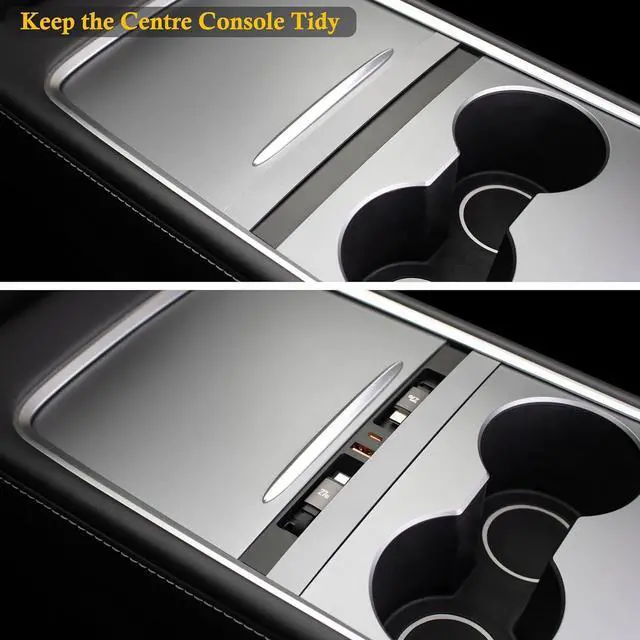 Multi-purpose & Never Affect Car FunctionalityTesla USB hub docking station supports 30W fast charging and normal charging, perfect for charging electronic devices such as your phones, iPads, game boards, power bank, earphones, digital camera etc. The use of sliding lid and storage box is completely unaffected.