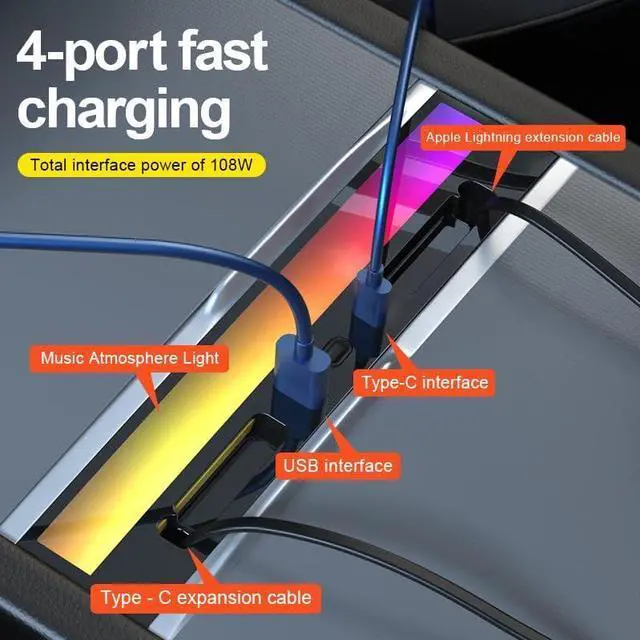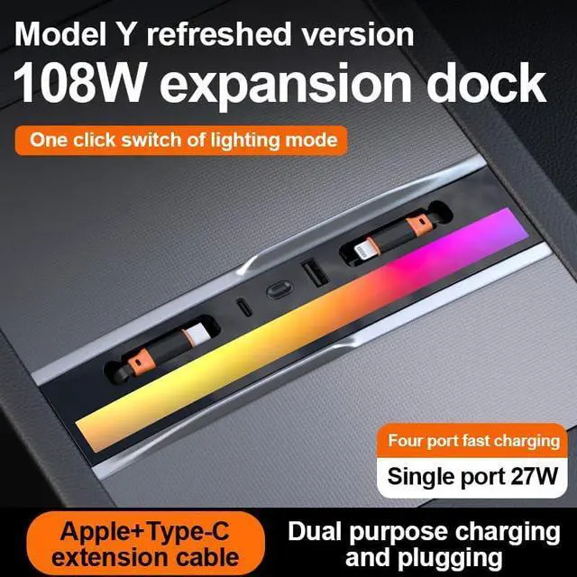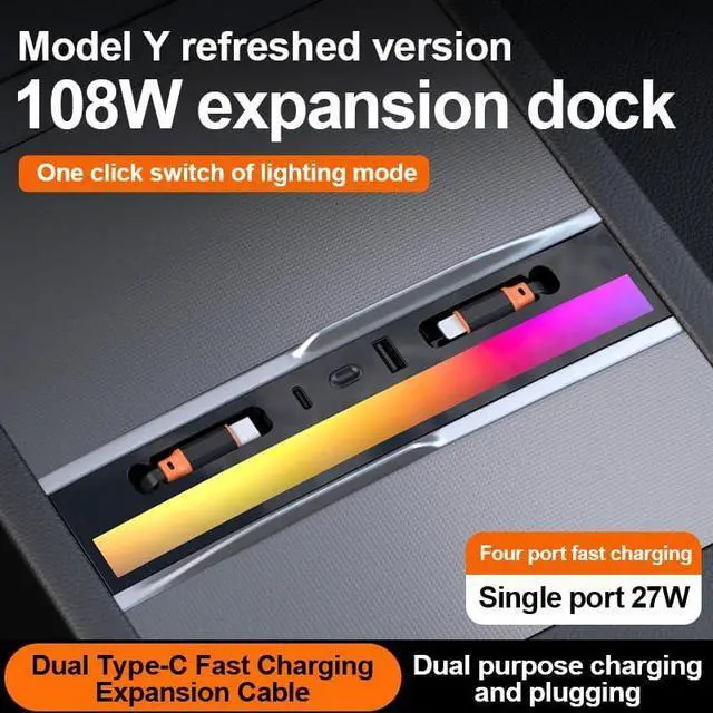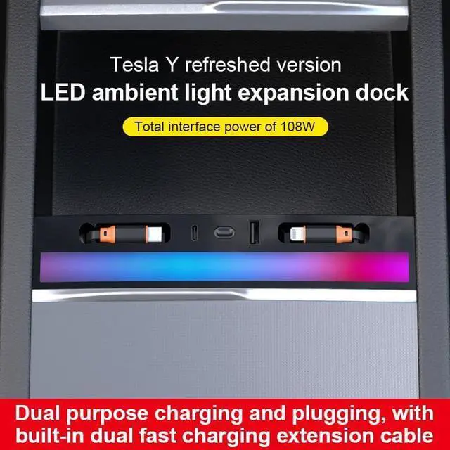Stylish Colorful Lighting: The colorful lighting feature not only adds a modern and trendy touch to your Tesla Y's interior but also serves as a visual indicator for the charging status. It makes it easy to check if your devices are charging properly at a glance, adding both style and functionality.