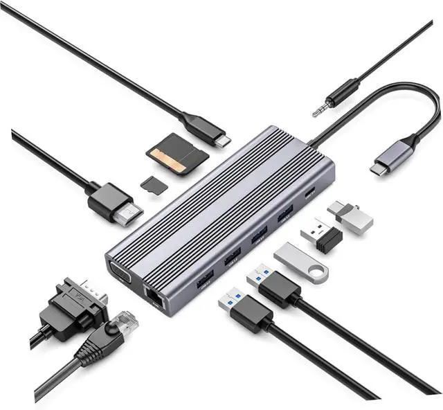 USB hub for laptop--simple and shell, high efficient heat dissipation, lightweight but sturdy, crush resistance and durable,12-in-1 Hub Adapter