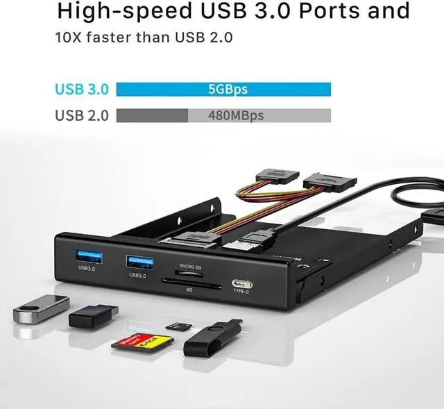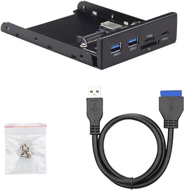 High-Speed Data Transfer and Multi-functional Ports: This front panel is equipped with one USB Type-C port and two USB 3.0 Type-A ports, all supporting data transfer speeds up to 5Gbps, easily meeting high-speed data transfer requirements. Additionally, it features a built-in Micro SD/TF card reader, facilitating quick data reading and transfer without the need for an external card reader, enhancing user convenience.