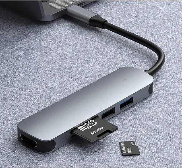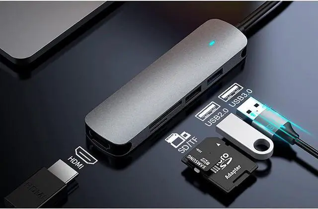USB-C Hub (5-in-1): Extend 4K HDMI, USB 3.0 Ports, USB 2.0 Ports, SD/TF Card Reader.