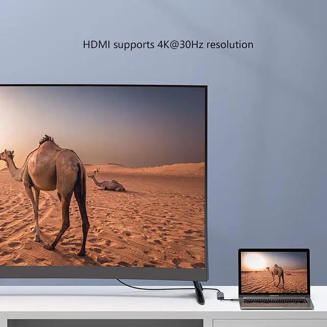 4K UHD HDMI: Enable you to mirror or extend the USB-C host screen to HDTV, monitor or projector with a resolution up to 4K@30Hz via the HDMI output port.
