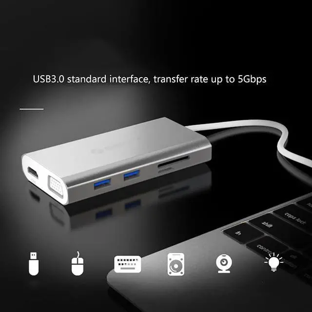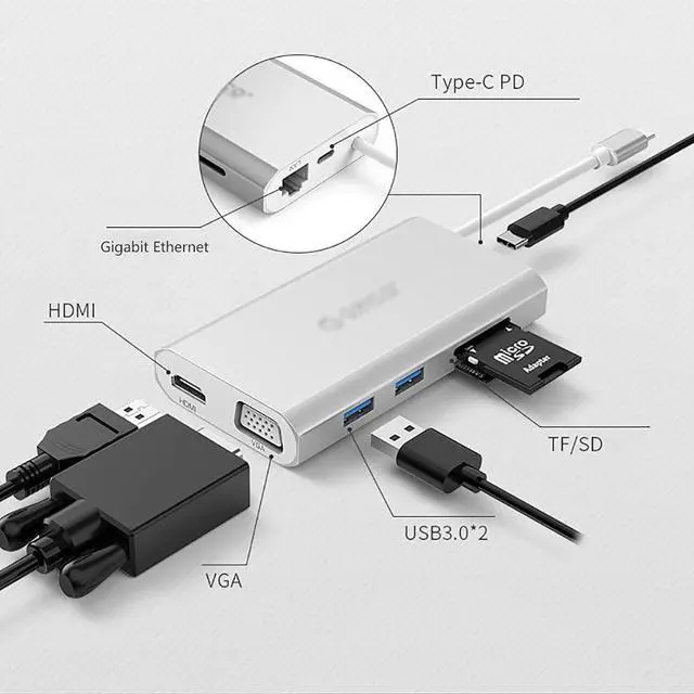 8-in-1 USB C Hub: The usb c multiport adapter meets all the functions you need. With 4K HDMI, 1080P VGA, 60W PD, 2 USB 3.0 ports, 1000Mbps Ethernet, SD/TF Card Reader.