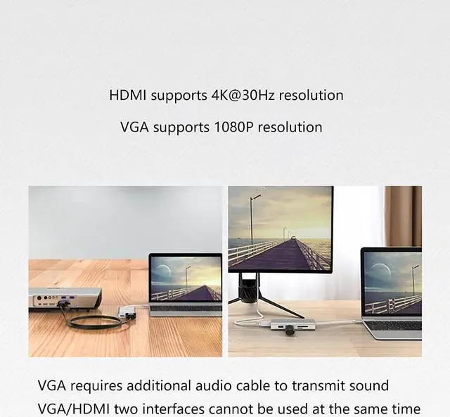 UHD Output: The HDMI port output up to 4K@30Hz resolution, which can perfectly mirror or extend your screen to HDTV, monitor, or projector. VGA support 1080P resolution. (can not be used simultaneously)