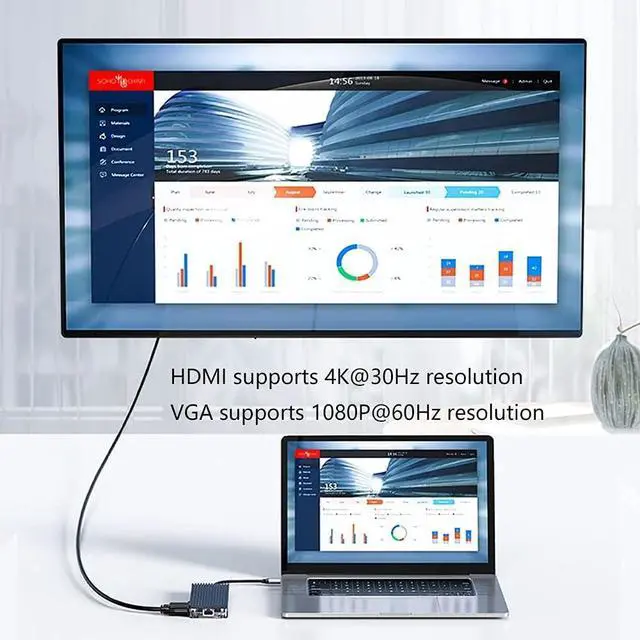Multi-Monitor Display: The HDMI port output up to 4K@30Hz resolution, VGA support 1080P@60Hz resolution.