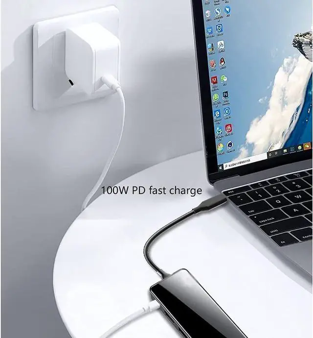 USB C Hub supports 5V-20V fast charging, power up to 100W MAX, fast charging for your laptop.