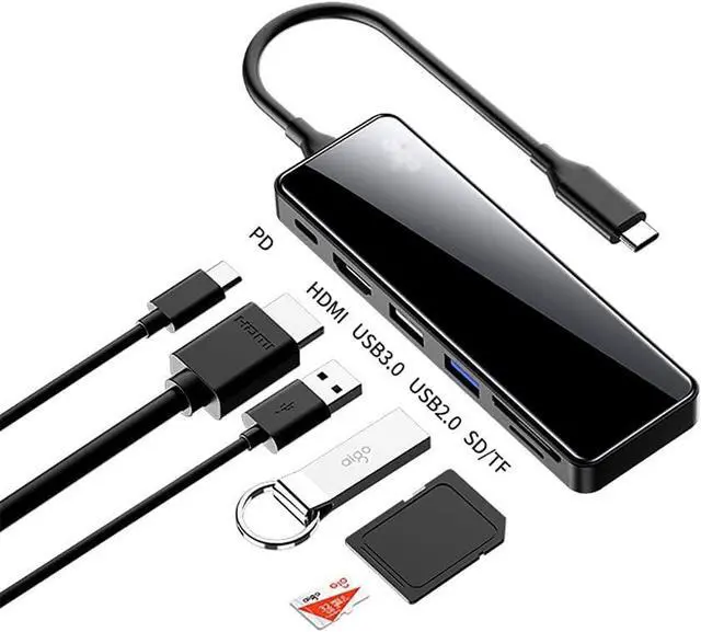6-in-1 USB C Hub: Work for the latest USB-C devices 4K HDMI, USB 3.0 Ports, USB 2.0 Ports, PD 100W Port, SD/TF Card Reader.
