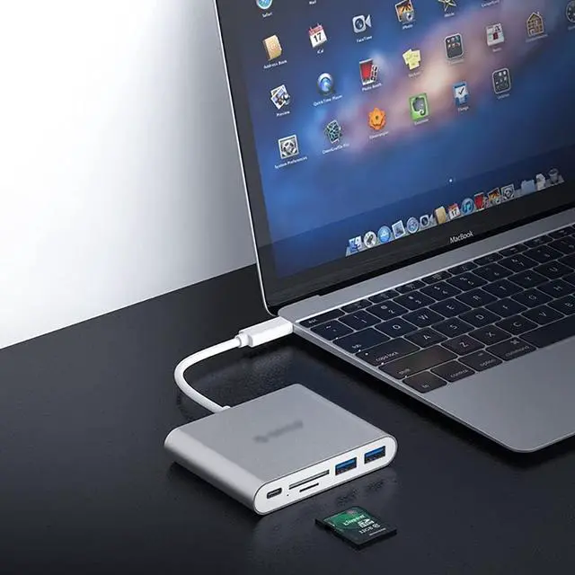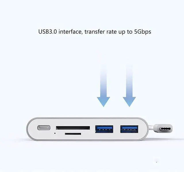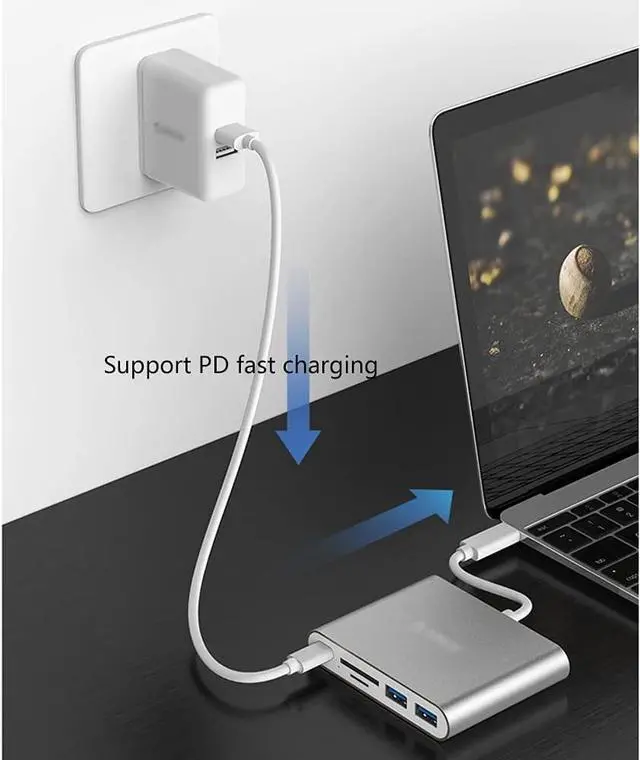5-in-1 USB C Hub: The usb c multiport adapter meets all the functions you need. With 2 USB 3.0 Ports, SD/TF Card Reader, PD Charging Ports.