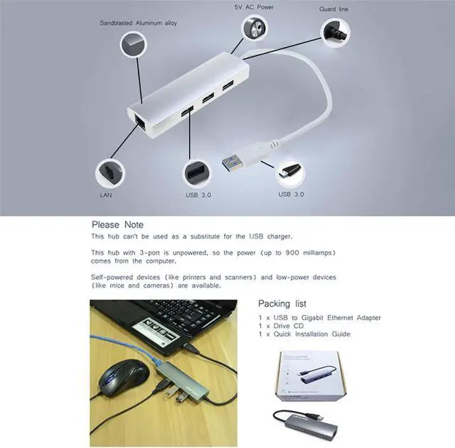 Aluminum housing makes this USB3.0 Hub adapters durability to use, keep you away from cheap and fragile look.