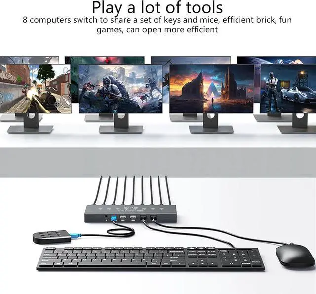 manage multiple devices with 8 in 4 out USB Switching Selector, allowing up to 8 computers to share a single set of peripherals such as a keyboards, and printer, enhancing productivity and efficiency.