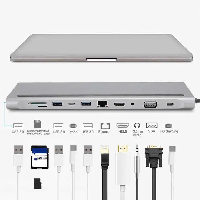 Complete Package: Includes 3 x USB3.0, 1 x small memory card, 1 x memory card, 1 x Type-C, 1 x RJ45, 1 x , 1 x 3.5mm interface, 1 x VGA interface, and 1 x PD for all your connectivity needs.