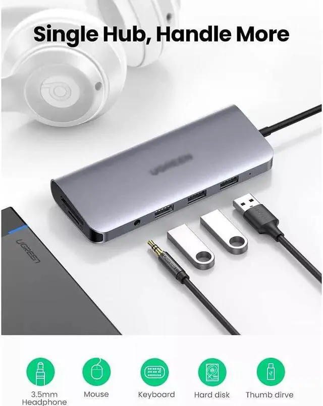 This USB Type C hub adapter provides with 3 USB 3.0 port for your laptop, enhance the capability to connect more USB devices simultaneously, no need to plugging & unplugging repeatedly anymore.