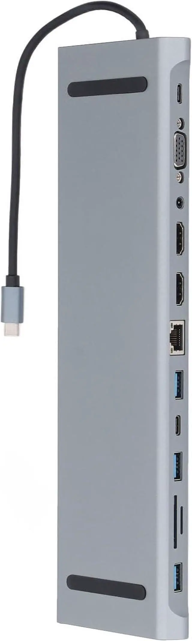 [Wide Range of Connectivity] The hub docking station offers 12 ports including 2 , 3 usb, 3 usb c, 1 ethernet, 1 sd card slot, 1 memory card slot, 1 vga, and 3.5mm audio, providing versatile options for your devices.