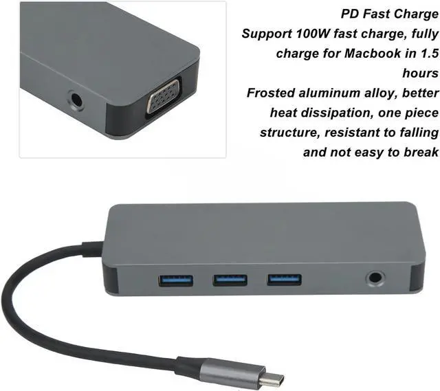 sturdy and Efficient: Made from aluminum alloy, this hub effectively dissipates heat, ensuring stable performance. Package includes 1 x USB C Hub and 1 x Manual for easy setup.