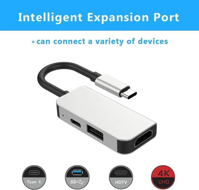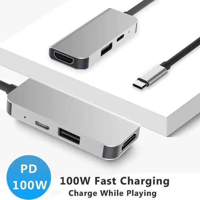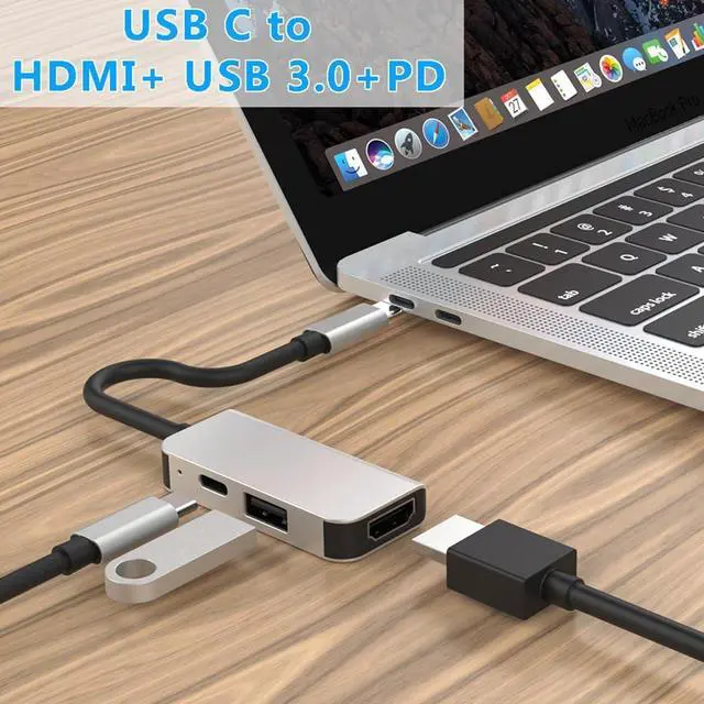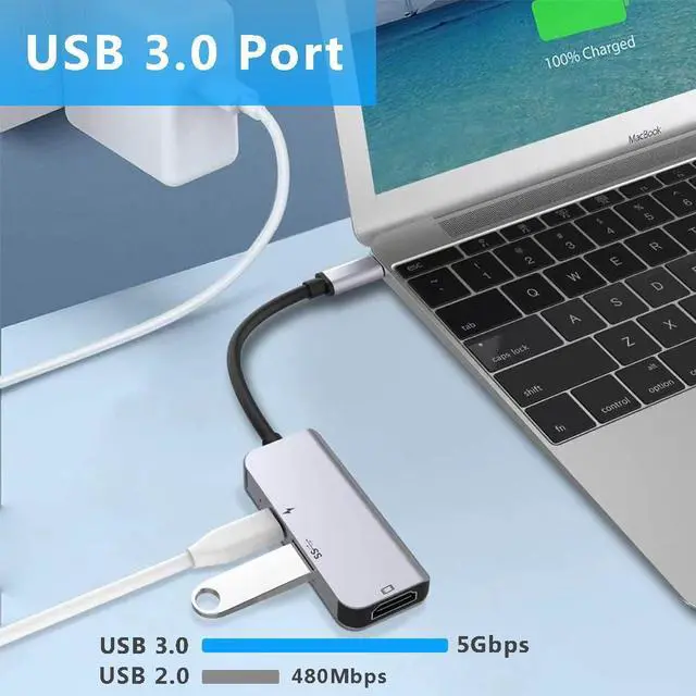 3-in-1 USB C Hub Expansion: USB C Multiport Hub features a 100W Type C charging port, a 4K@30Hz HDMI output port, a USB3.0 port. All the ports can work simultaneously, slim yet powerful
