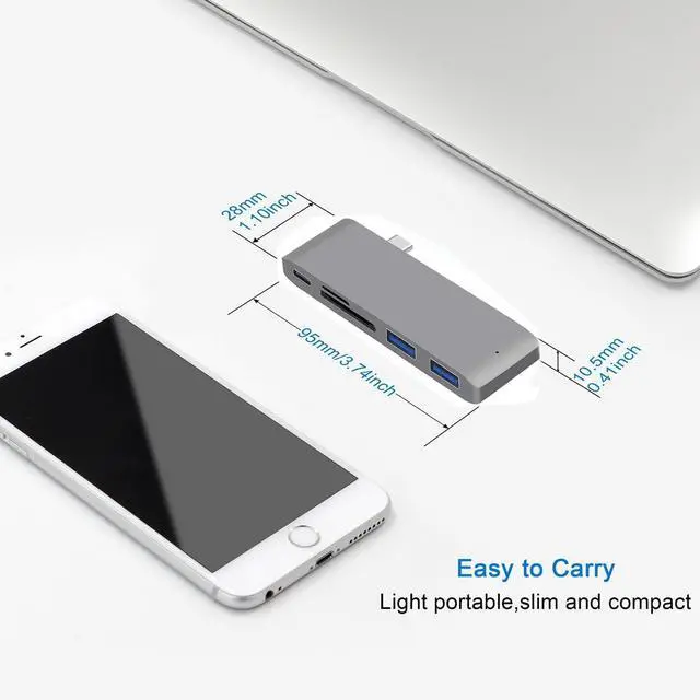 Measurements: Our memory card reader features a harmonious blend of sleekness and practicality. At 3.66" x 1.1" x 0.55", the Type C HUB embodies the perfect fusion of compact dimensions and outstanding performance. Your digital companion awaits.