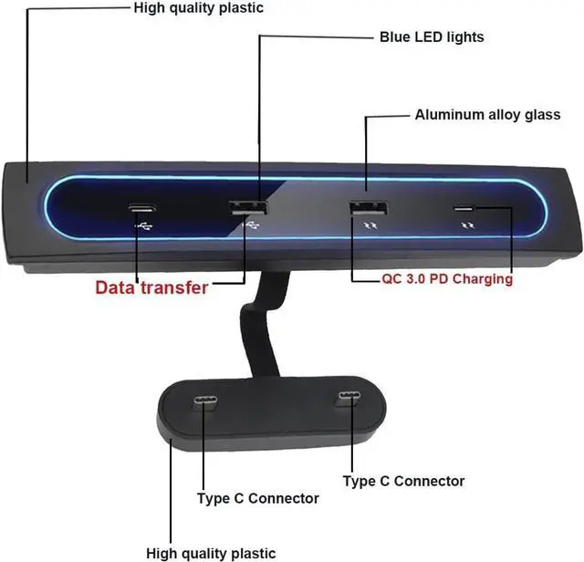 MULTI FUNCTIONALITY: This center console USB hub offers charging and data transfer capabilities, making it suitable for a wide range of devices including smartphones, gamepads, and digital cameras.
