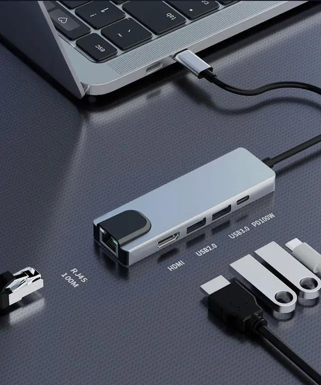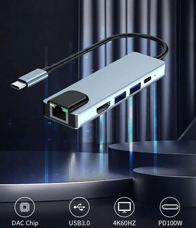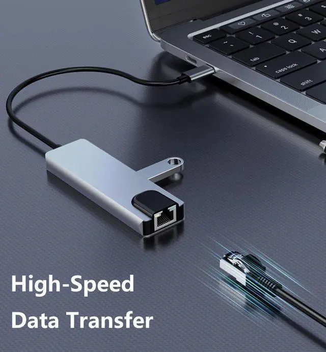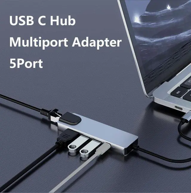USB Hub Multiport Adapter 5Port: Stay connected with reliable and high-speed wired internet access using the Ethernet port. Say goodbye to laggy Wi-Fi connections and enjoy seamless browsing, streaming, and gaming experiences.