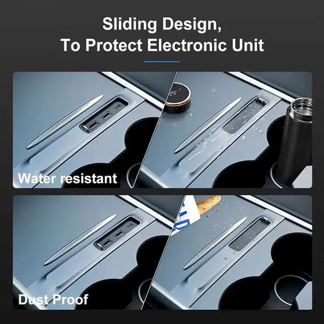 This center console hub has LED lights, you can manually press the button to light up your storage compartment. When you want to turn off the LED light, you can choose to press the , or wait for two minutes to turn off automatically.(
