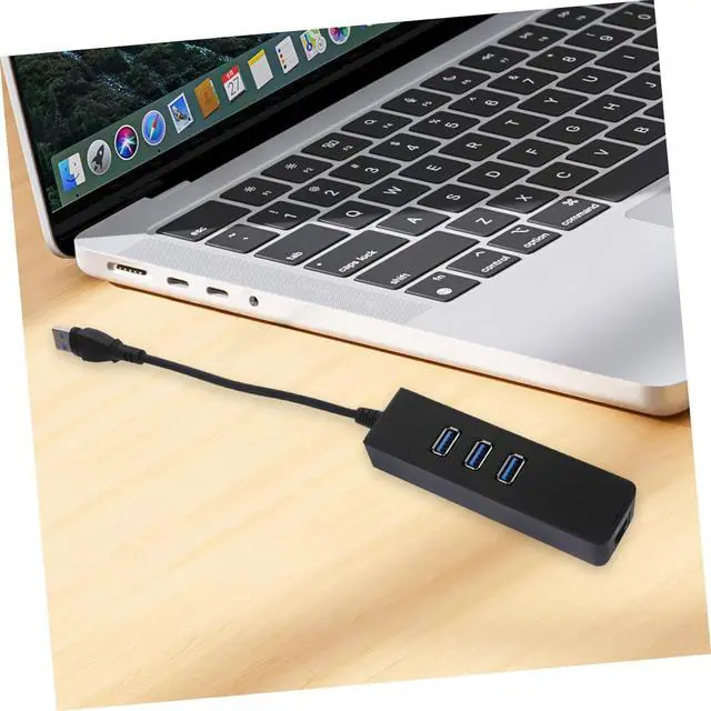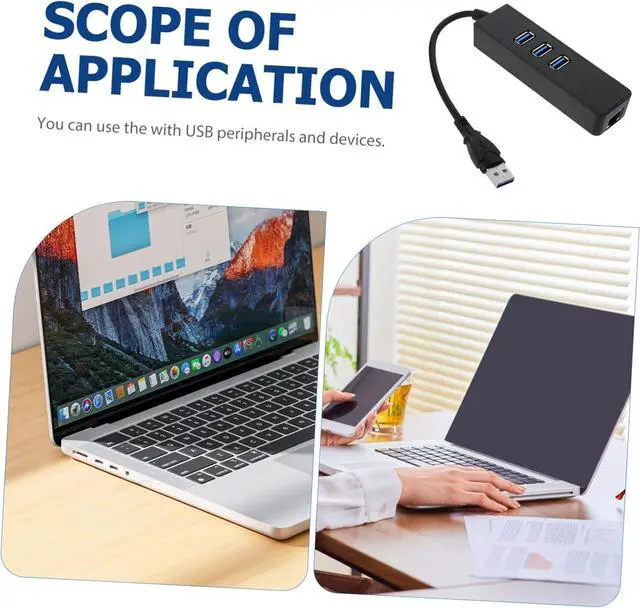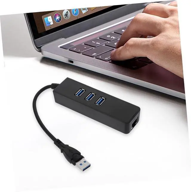 Data hub with ethernet adapter: 3-in-1 dual functionality: three USB 30 ports and one 1000m gigabit ethernet adapter