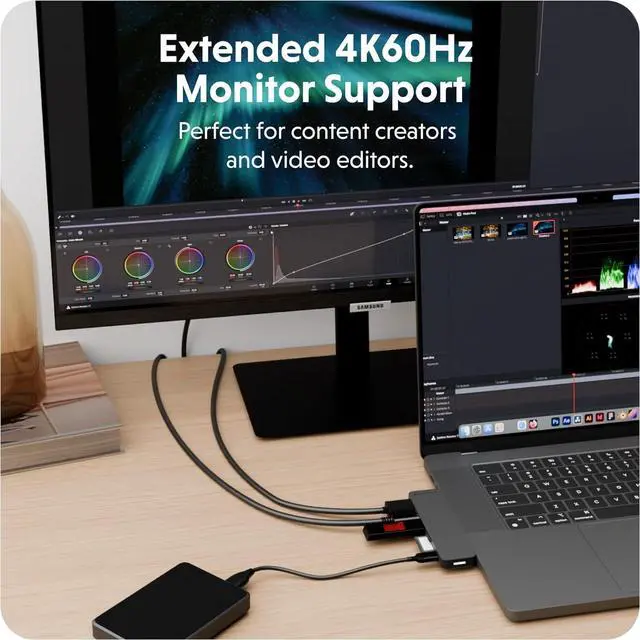 4K60Hz Display Output: Extend your workspace and edit with precision using crystal-clear 4K60Hz monitor support on this multiport USB hub ideal for content creators, designers, and multitaskers.