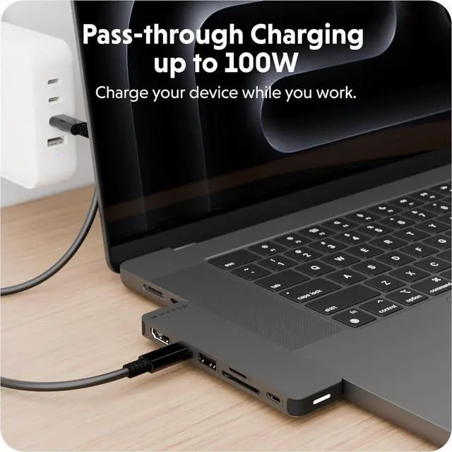 100W Power Delivery Pass-Through Charging: Charge your device up to 85W with a 100W Power Delivery 3.0 charger while using the HyperDrive USB C Hub perfect for uninterrupted performance.