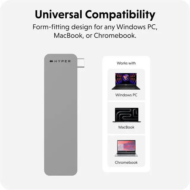 Universal USB-C Compatibility: Designed to fit seamlessly with Windows PCs, MacBooks, and Chromebooks, this type C hub for laptop offers effortless integration for any device.