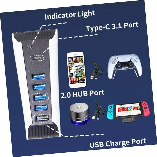 Desktop hub: this USB hub is specially compatible for ps5 game console,usb expander.