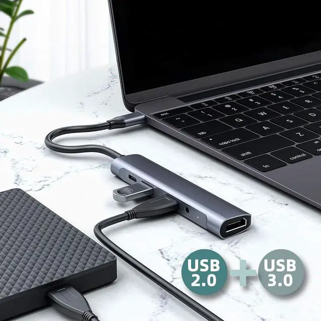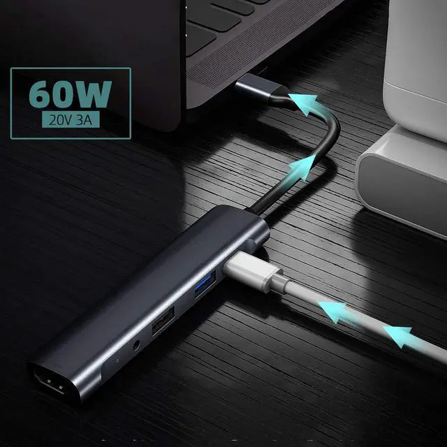 USB DOCKING STATION:5-in1 USB hub with TYPE-C interface + USB3.0 interface X3 + 3.5MM Audio, plug and play, Ideal partner for laptops, computers, tablets and mobile phones