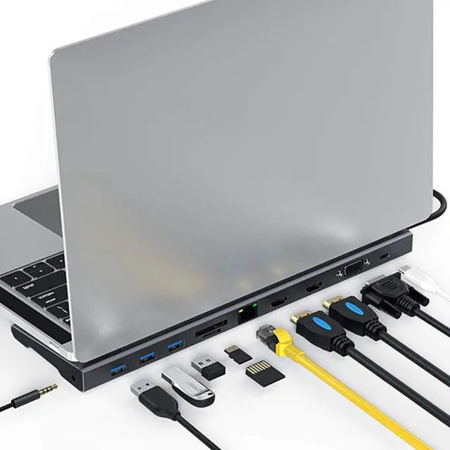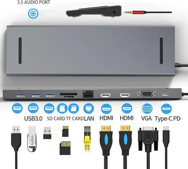 11 IN 1 DESIGN & MASSIVE EXPANSION:3 standard USB ports with 5Gbps transfer speed ensuring quick syncing and file sharing, 2 HDMI port with vivid 4K video output that transfers media in seconds with 3D effect, 2 SD card slots (one Micro SD), PD 100W, USB Type-C, Headphone jack, RJ45 LAN for superior data-storing versatility. All possibilities in one hub.