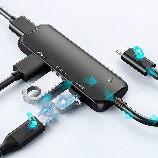 USB HUB: 4-Port USB 3.0 Hub adapter expands your laptop with 2 addtional USB 2.0 Port, Use the USB hub to sync data at blazing speeds up to 5Gbpsfast enough to transfer an HD movie in seconds.