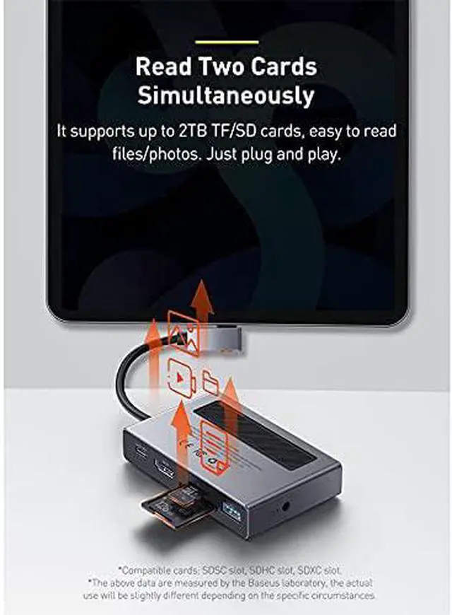 Both large and small cards can be read at the same time. TF/SD supports a capacity of up to 2TB, plugging and read, and easy reading of files/photos.