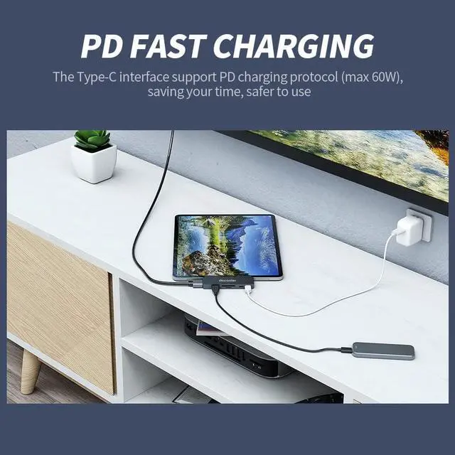 The Type-C interfaces support PD charging protocol(max 60W) and data transfer(up to 480Mbps), saving your time, more convenient to use.