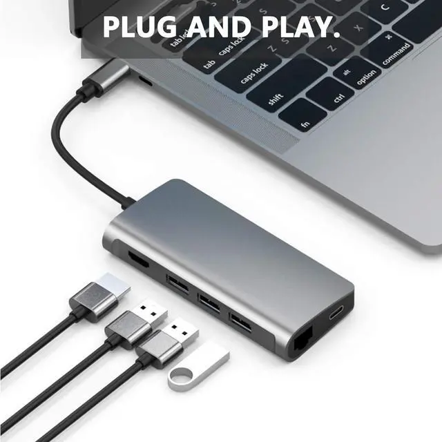 8 in 1 Design & Massive Expansion:With PD Fast Charge, HDMI, RJ45 Gigabit Ethernet, 3 USB3.0, TF/SD, Make the USB C adapter to connect any device with a USB-C port-all functions are concentrated in one hub