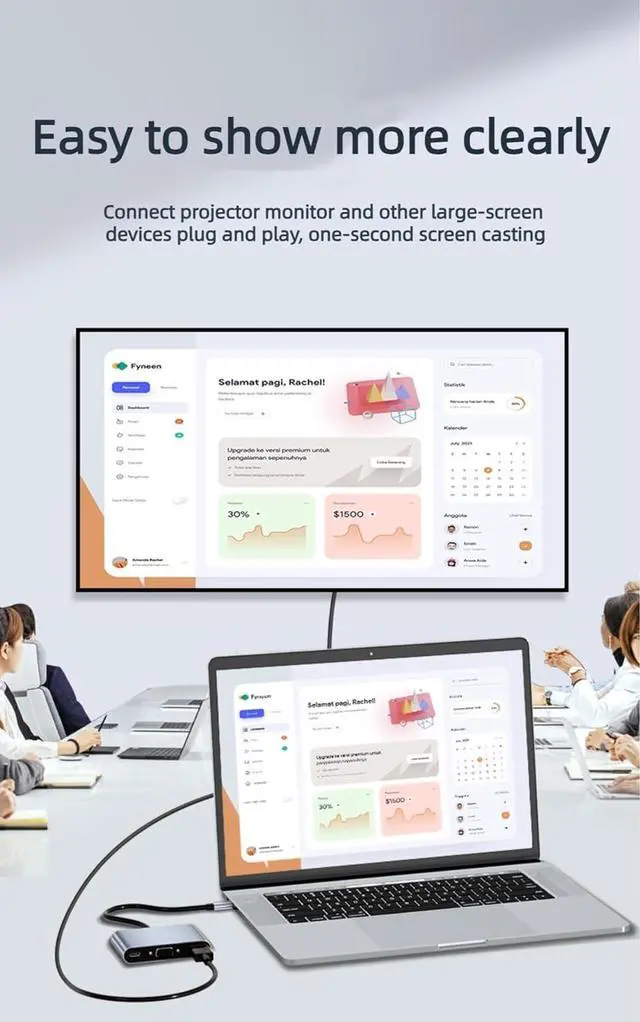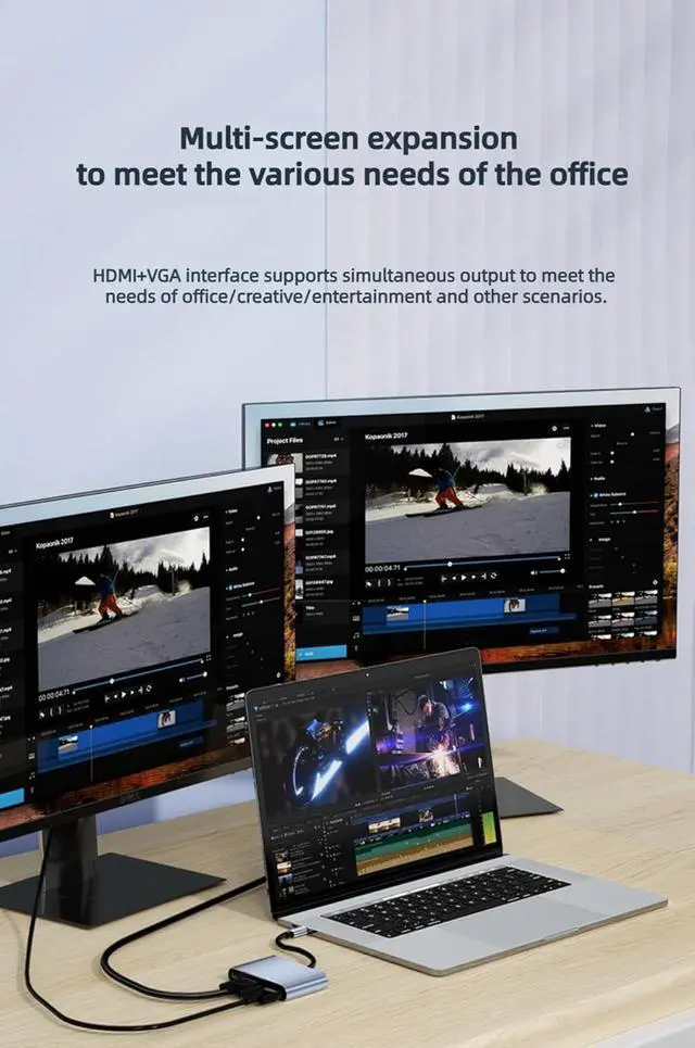 Multi-Screen ExpansionThis hub's +VGA support simultaneous output to meet the needs of office/creative/entertainment and other scenarios.