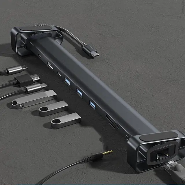 MULTIFUNCTION: Includes 10 Gbps USB C data port, 4K HD multimedia interface, VGA, 100W PD3.0 power input port, 5Gbps USB A data port, a 100Mbps Ethernet port, an AUX port, and micro storage card memory card slot.